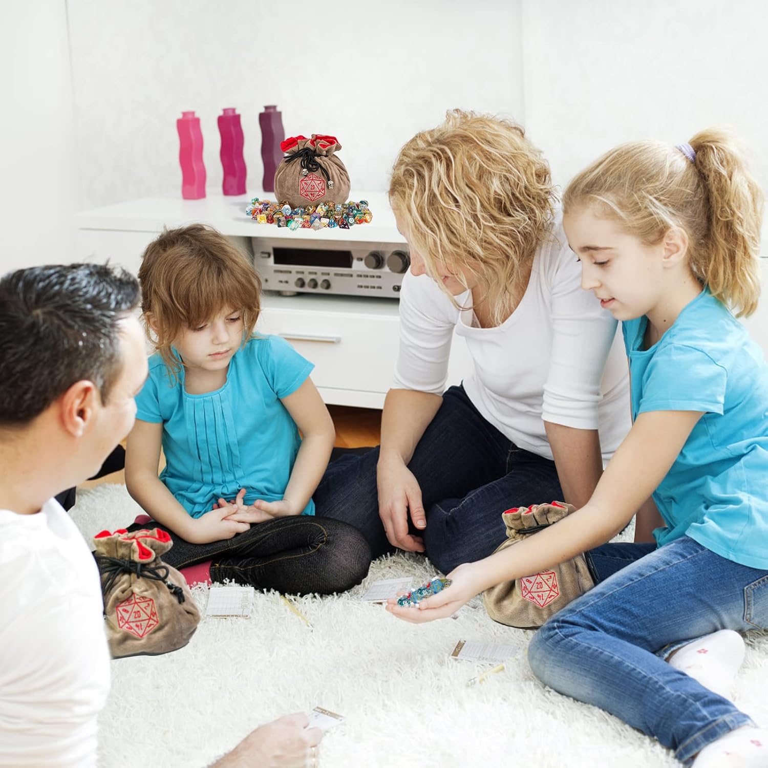 - 【Thick dice bag】: The dice bag is made of thick flannelette, so it's very durable, you don't have to worry about the damage of the bag by sharp dice or metal dice. The round base is not waterproof, please be careful not to get wet with water.