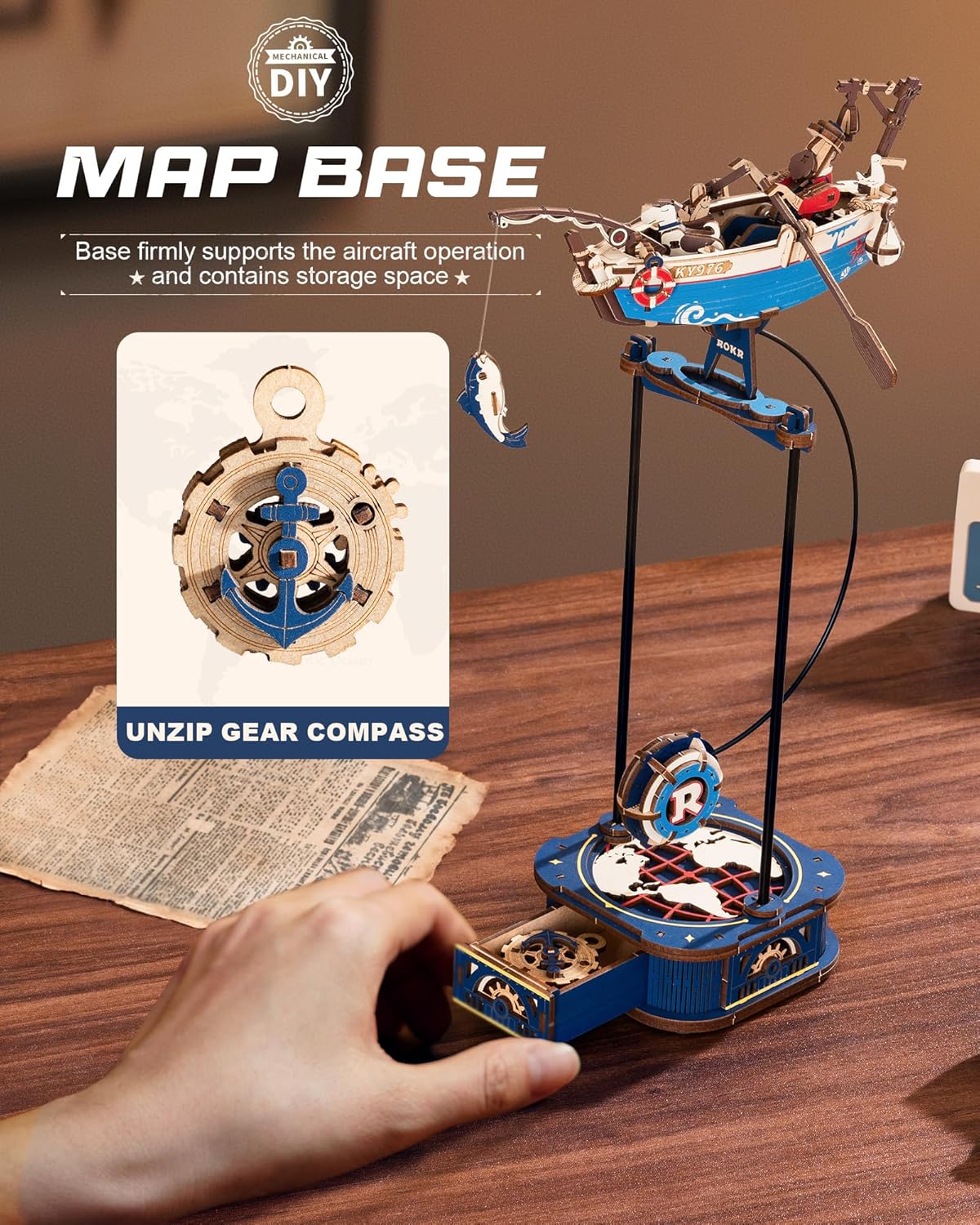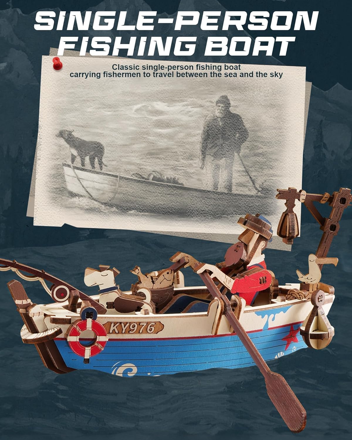 ROKR 3D Wooden Puzzles for Adults,Gravity Swing Ocean Fisher Model kit, 161Piece 3D Puzzles for Adults