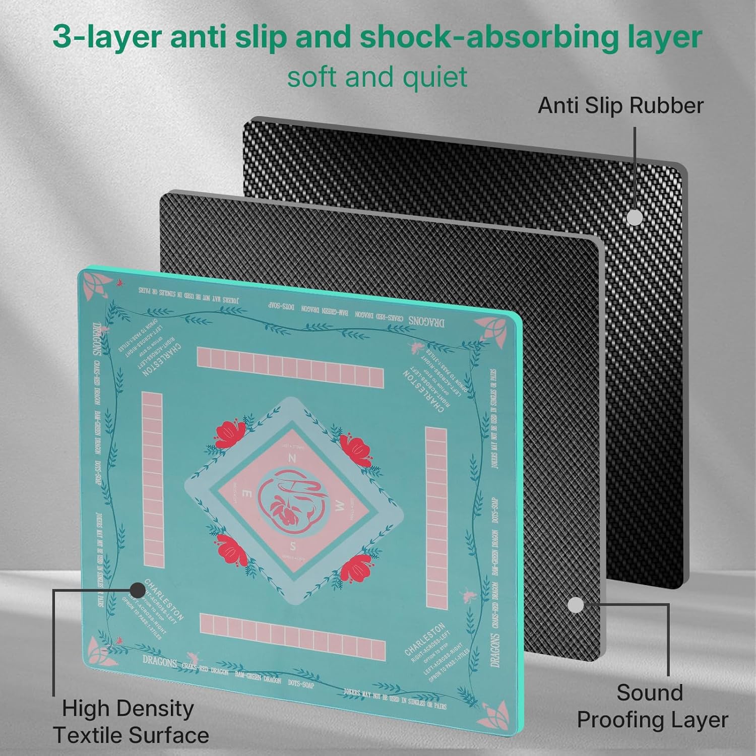 - Ideal Size and Precise Surface: Mahjong table mat size: 31.5 * 31.5 inches, perfect for mahjong, dominoes, and other tabletop games. The precision woven surface is smooth and lint free, making it an ideal mahjong mat for dining tables.