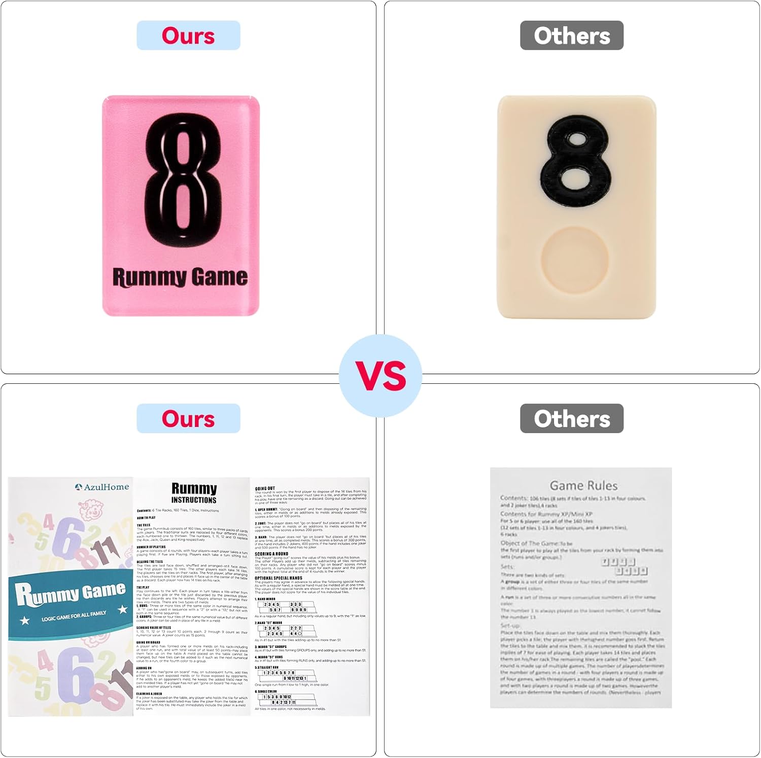 - Comprehensive All-in-One Set: AzulHome rummy tiles set includes 160 Acrylic colored tiles, 6 premium wooden trays (9.8" x 2.75" each), a portable zippered case, and instructions. It's a complete package for enjoyable game play anywhere.