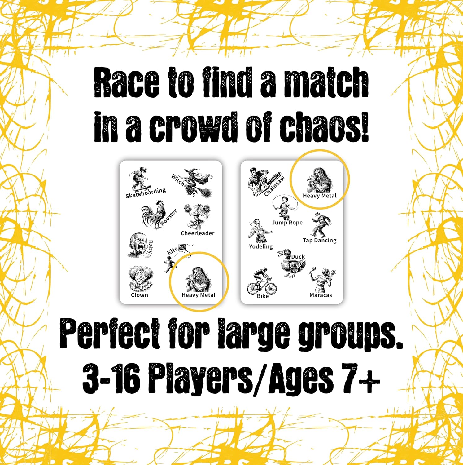 - LARGE GROUPS: Designed for 3–16 players (or more if you're bold), Match Mob is perfect for parties, family gatherings, work icebreakers—even outdoor fun.