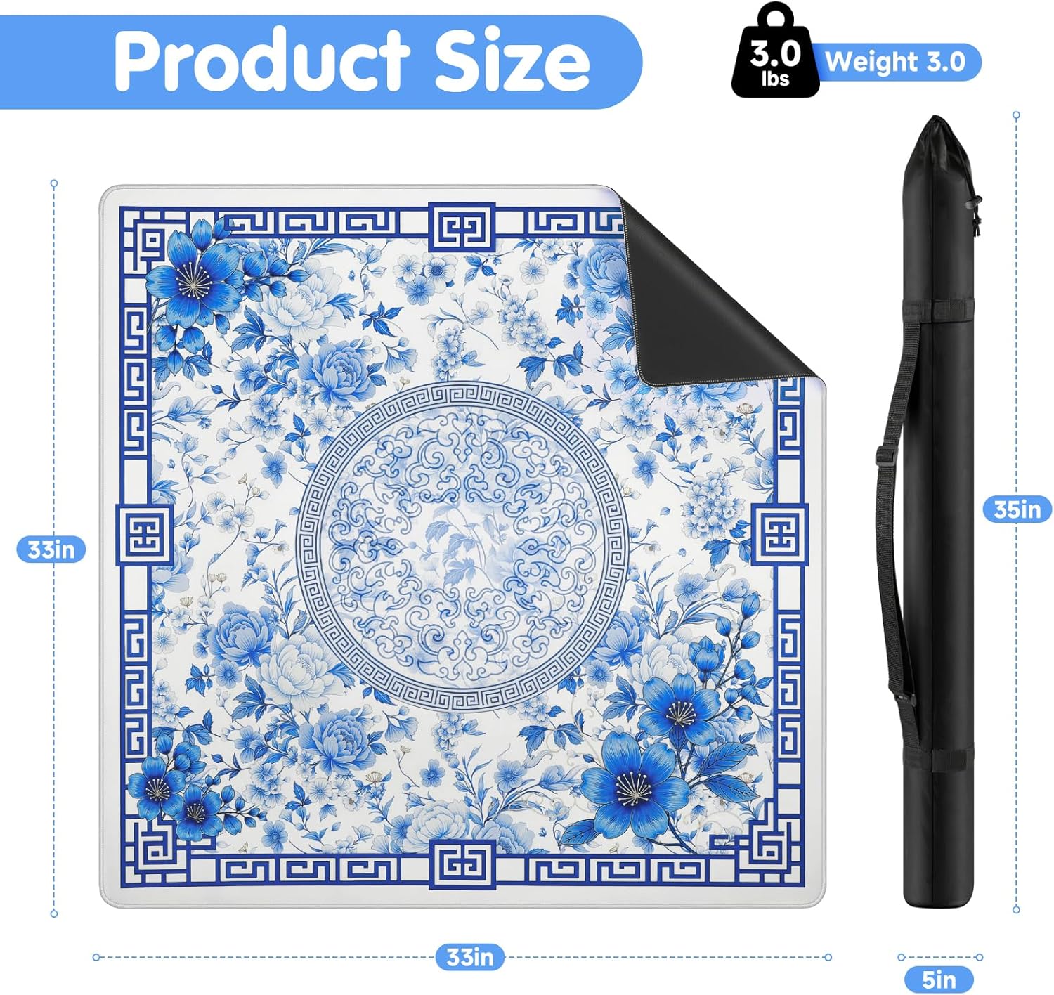 - 【Perfect Size & Ideal Gift】 Measuring 33"x33"x0.08", this versatile blue mahjong mat fits most game tables. Elegant artistic design with premium visual appeal, it makes for exceptional mahjong gifts for enthusiasts and beginners alike.