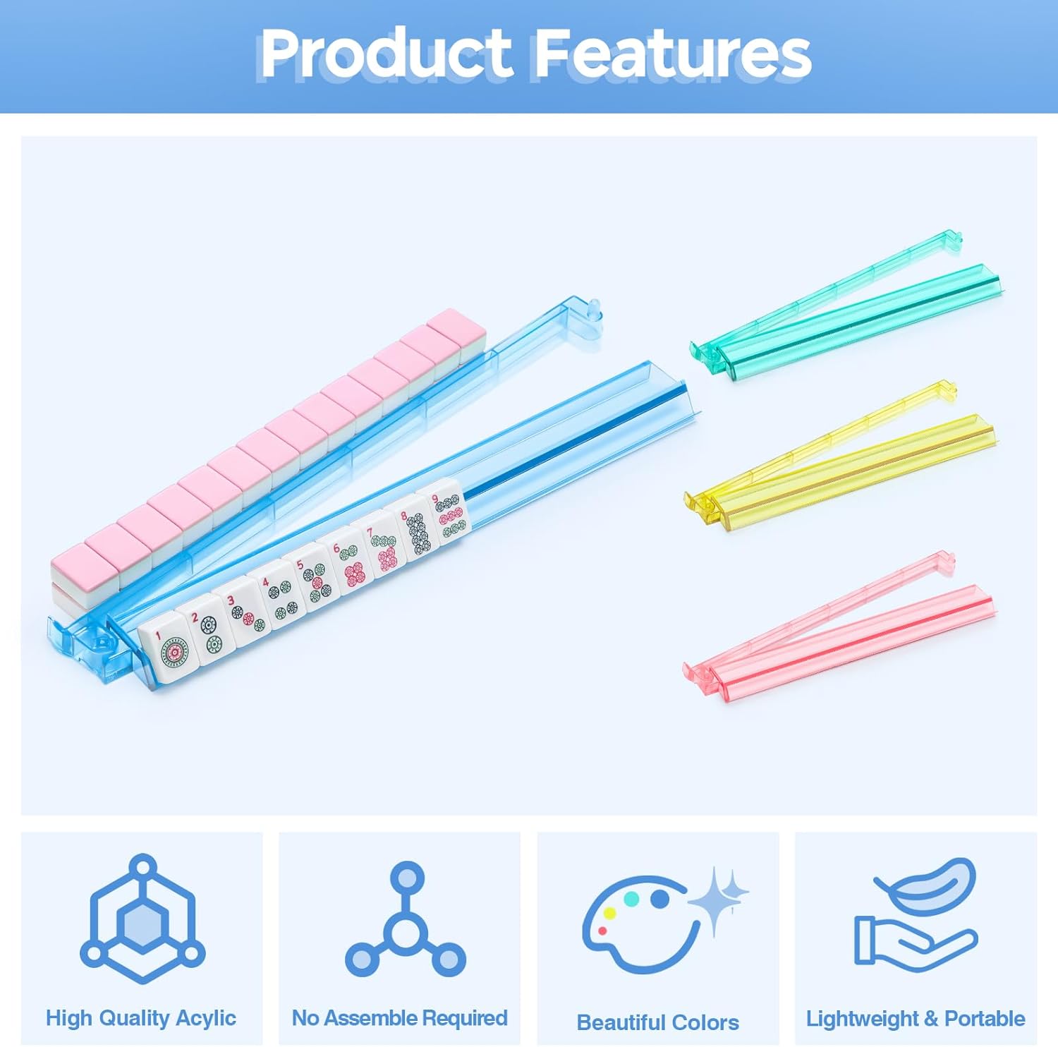 - Premium and Durable Material: These mahjong racks with pushers are made of high quality acrylic, offering superior endurance and toughness compared to standard racks