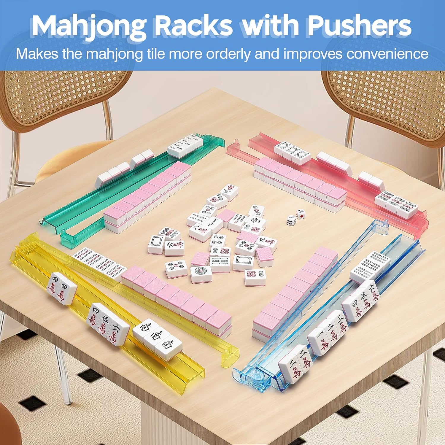 - Enhancing Your Gaming Experience: Slanted racks offer comfortable viewing; Rotatable pushers help you hold the tiles easily and push the tiles walls into place. Must-haves for both professional and casual Mahjong players